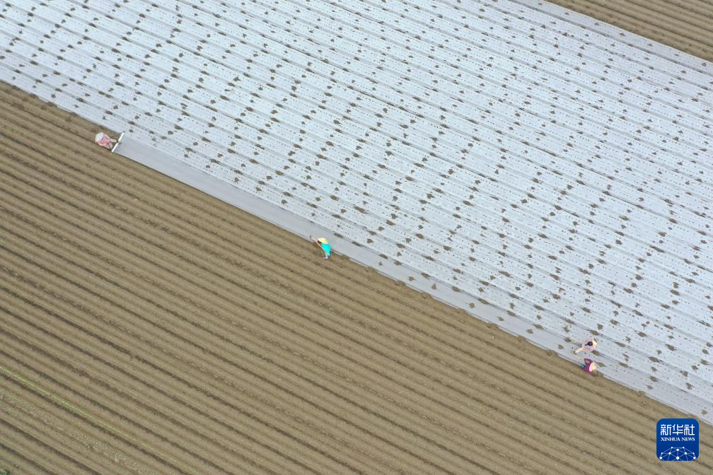 10月22日,农民在河南省开封市鼓楼区仙人庄街道何楼村田间种植大蒜。