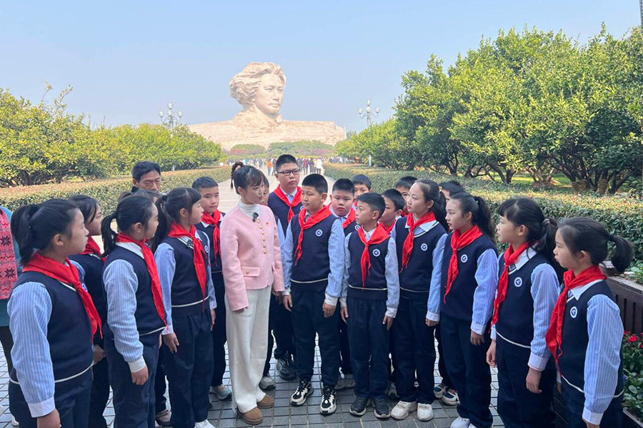 长沙市雨花区万境小学通过开展“行走的思政课”,以沉浸式参观、情景式讲解、互动式研讨为核心,让课本上的文字变成可触摸的实物、可聆听的故事、可共鸣的情感。师生们先后走进橘子洲头、雷锋纪念馆、烈士公园、黄兴故居,聆听革命先辈与时代楷模的奉献故事……在老师们的引领下,学生们在红色基地里看展、记录、分享,革命先辈的奋斗精神与家国情怀悄然融入心灵,实现了“红色铸魂、实践育人、心理滋养”的育人效果。