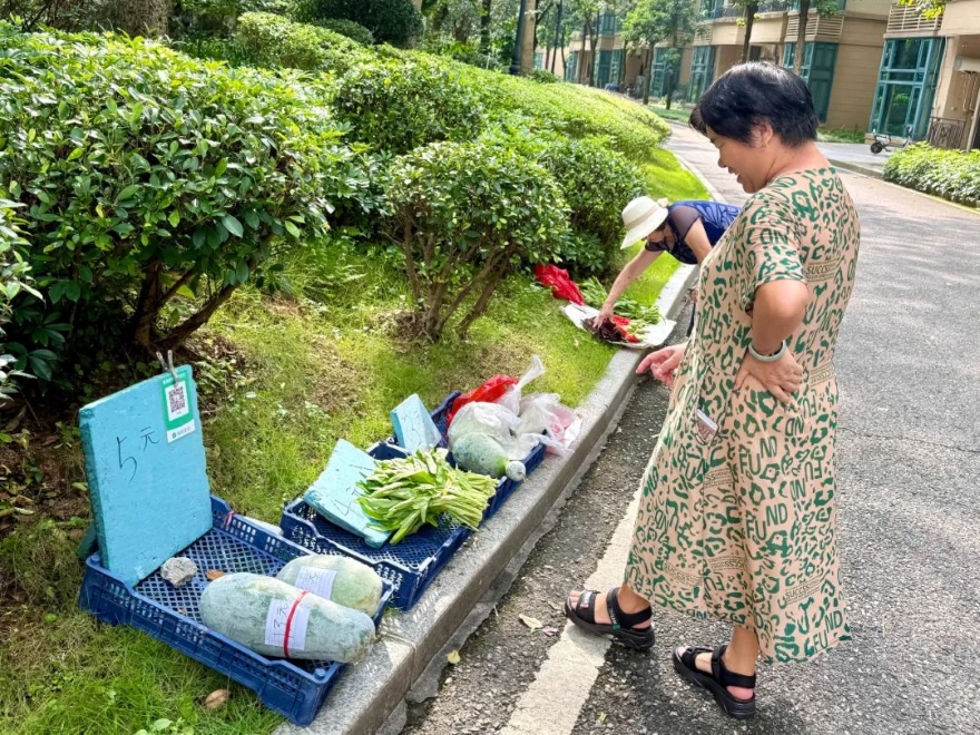 居民刘腊英将刚从菜地采摘的蔬菜仔细捆好,放置在楼下的摊位上便转身离去。“我把菜放在楼下,社区的人来买,都很自觉扫码付款或者投零钱,摆在这里很放心。”她微笑着说。五年来,这些无人菜摊始终保持“零逃单”的记录,成为社区诚信文明的生动写照。