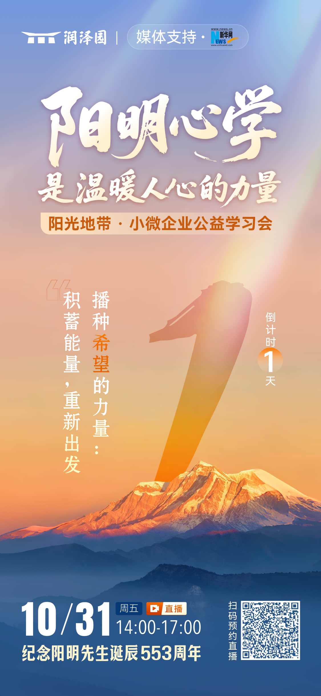 润泽园教育“阳明心学是温暖人心的力量”直播倒计时1天