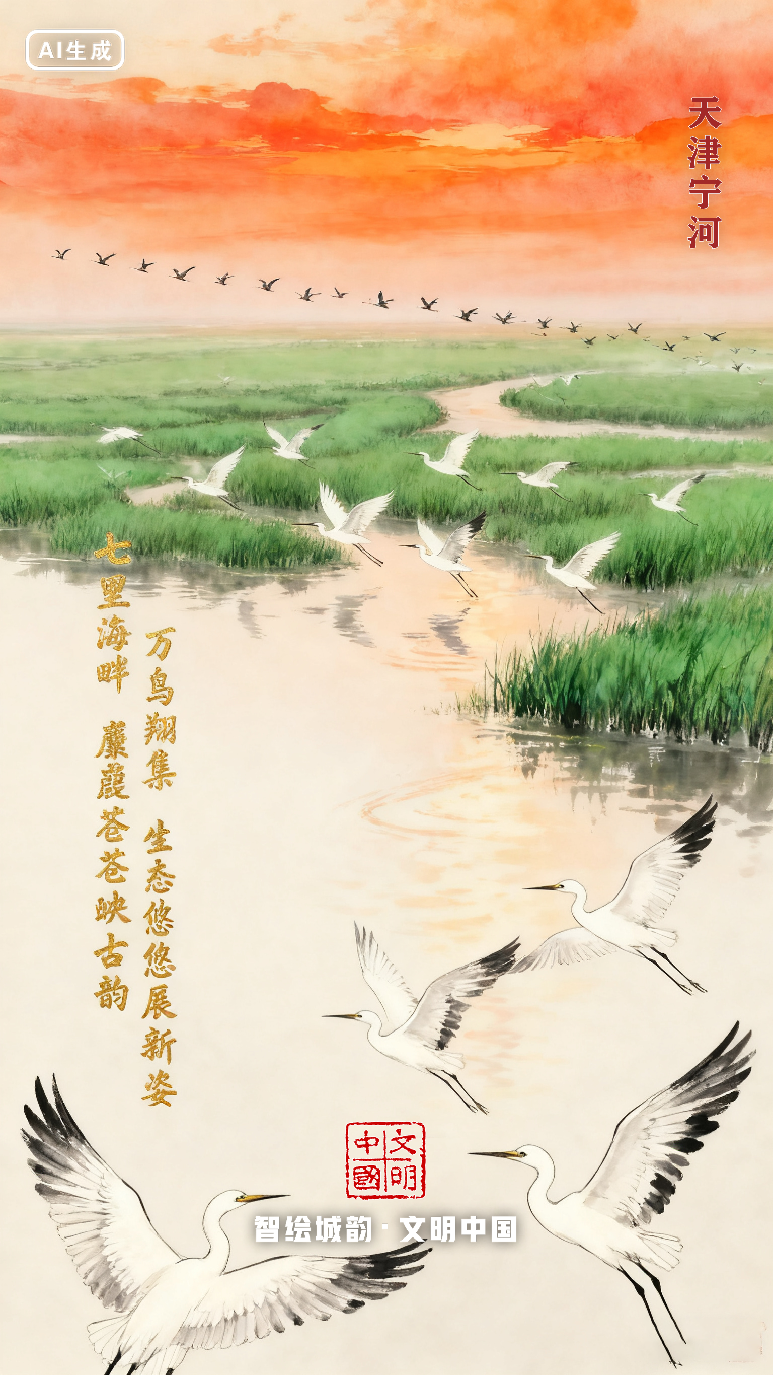 文明中国·天津|“智绘城韵·文明中国”海报:飞檐触云汉 古阁阅千年