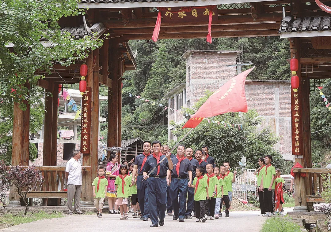 此外,服务队还充分挖掘东升村的红色资源,帮助打造“红军驿站”红色教育基地。如今,基地年接待研学团队超5000人次,带动村集体经济增收30%,实现了“思政教育+乡村振兴”的良性互动。马堤乡乡长陆清清动情地说:“老战士们不仅带来物质帮助,更用红色故事点亮群众的精神灯塔,这是最宝贵的‘扶贫财富’。”