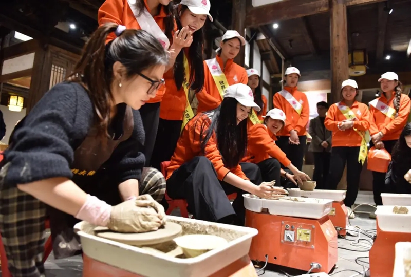 古街里的“陶然阁”陶艺体验馆由废弃民居楼修缮而成,如今既是研学基地,又是文明实践点。每月定期开展“亲子手作”活动,吸引了县内外研学团队和亲子家庭参与。陶艺老师涂丽在活动日志里写道,学员们通过创作,不仅掌握了陶艺技艺,还化身小小“非遗传播员”,向家人传递陶艺文化。