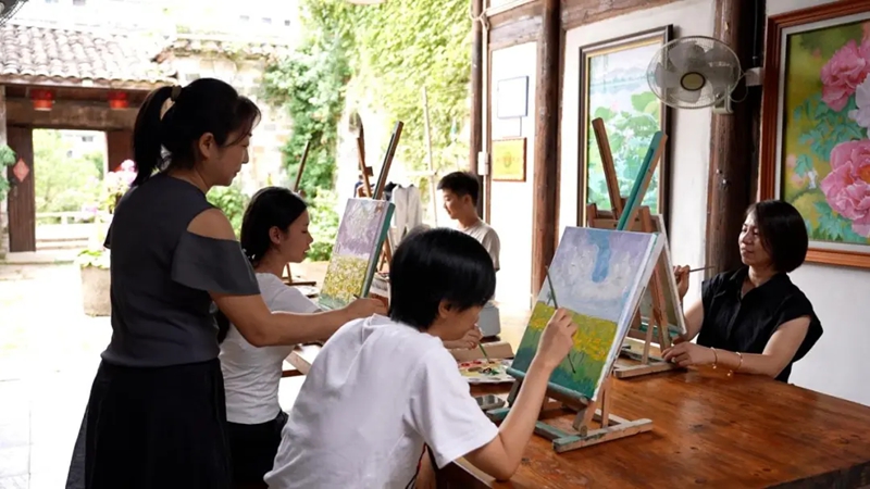 空置老骑楼改造的油画体验民宿“云水间”,实现“白天课堂、夜晚民宿”的功能转换。每月固定开展油画体验活动,游客在老街景致下进行创作,既能带走作品,也可选购原创油画。负责人周艳表示,这里已成为老街的“流动油画展厅”。