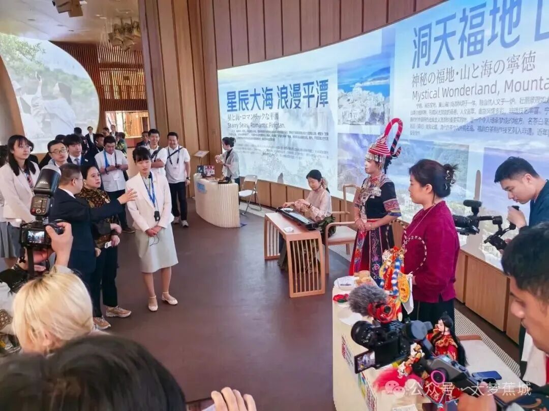 2025年日本大阪世博会中国馆福建活动周现场,雷美凤正在推介畲族文化。宁德文明网供图
