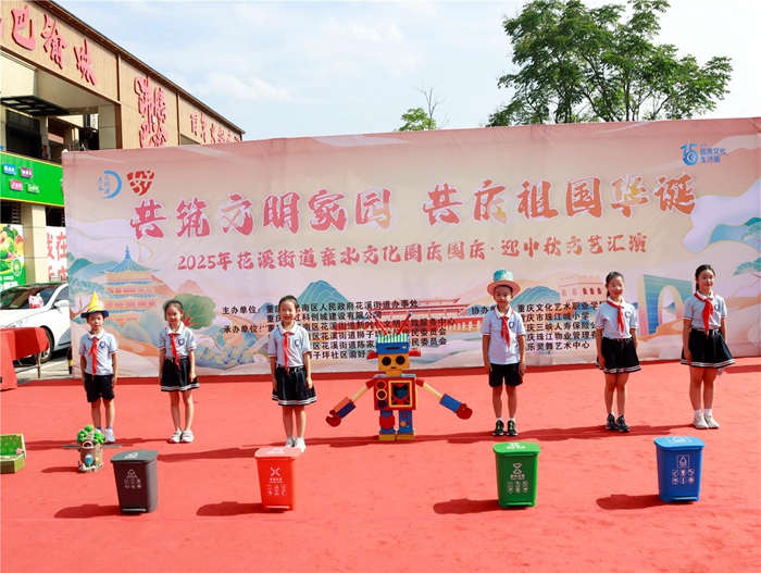 表演间隙,来自珠江城小学的师生推出“创文小课堂”,以轻松有趣的方式向居民讲解“垃圾分类小技巧”,让孩子们成为文明宣传的小使者。