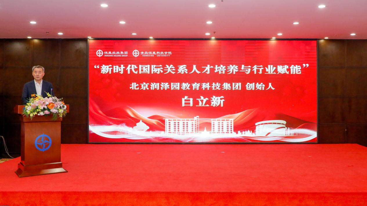 北京润泽园教育科技(集团)有限公司创始人白立新发言。(青岛恒星科技学院供图)