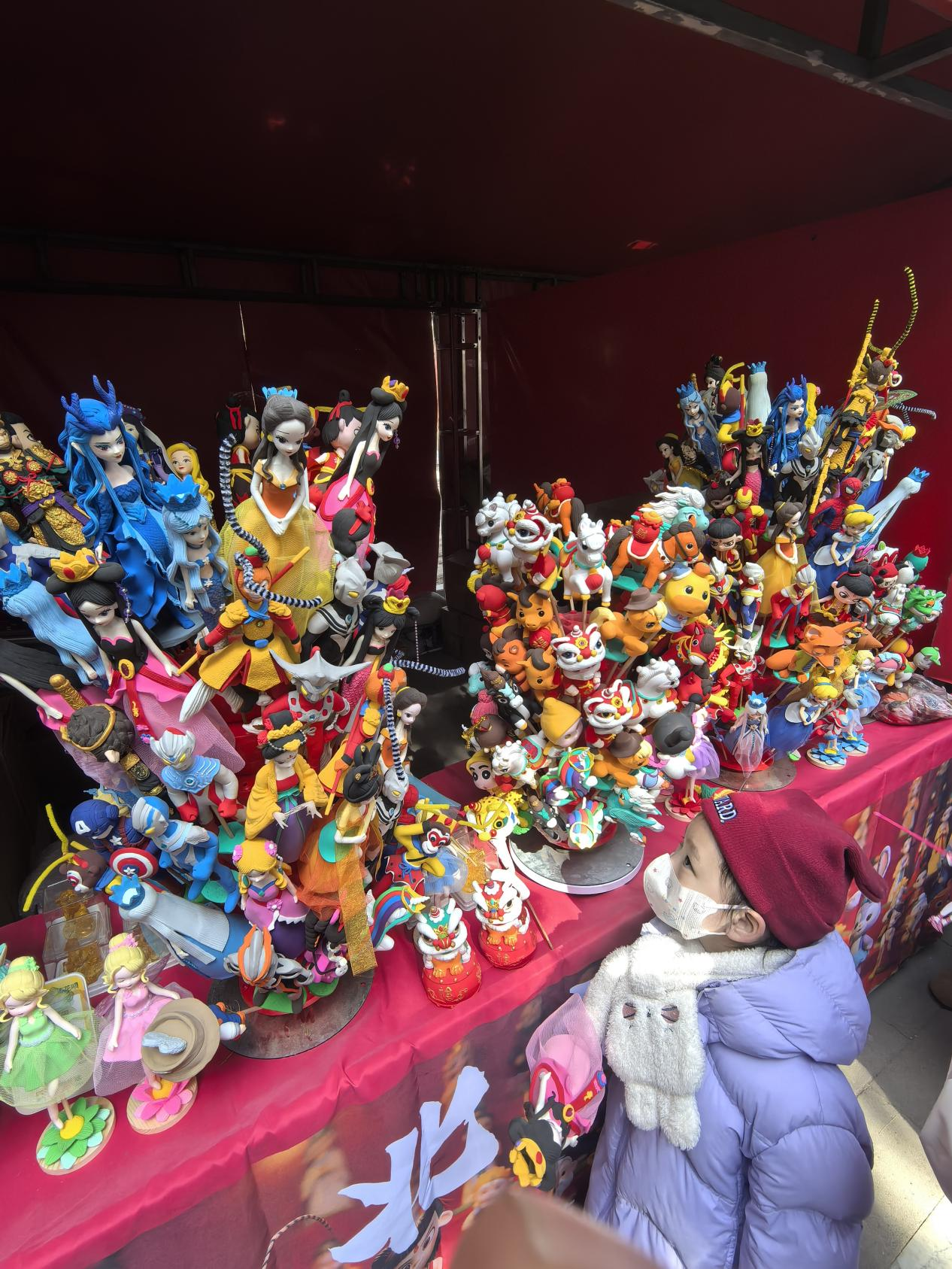 小巧玲珑的面塑吸引小朋友仰头欣赏。