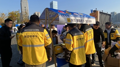 活动现场,美团骑行向有需要的在校大学生及家长免费赠送1000个符合国家认证标准的安全头盔,守护群众平安出行。