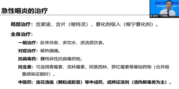 此外,丁邦晗在讲座中还特别介绍了连花清瘟在治疗咽炎中的应用。
