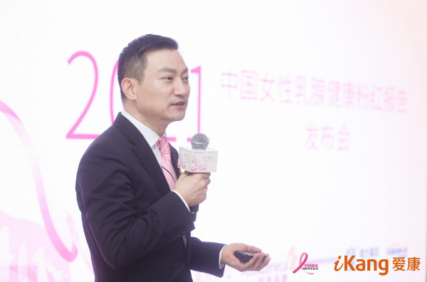 在发布会现场,爱康集团创始人、董事长兼CEO张黎刚对《2021中国女性乳腺健康粉红报告》进行了全面解读。