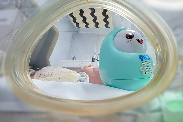 首都儿科研究所附属儿童医院的新生儿内科病房中,伴随着监护仪的滴答声,响起了轻缓动听的音乐和妈妈的呢喃细语。当30周的早产儿越越(化名)在暖箱里第一次听到录音笔中传来妈妈的声音时,她睁着好奇的大眼睛,安静聆听着妈妈的哼唱,时而把头转向声音传来的方向,偶尔还会抬起小胳膊伸个懒腰或者抬抬小腿。平时爱哭闹的越越,经过妈妈的“安慰”后,显得格外舒适,监护仪上显示的心率和呼吸频率也更加趋于稳定,不一会儿就进入了甜美的梦乡。