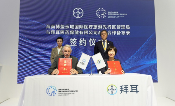 11月6日, 在第四届中国国际进口博览会上,拜耳与海南博鳌乐城国际医疗旅游先行区管理局(以下简称“乐城管理局”)签订了战略合作备忘录,双方希望充分发挥各自优惠政策、医疗资源及国际产业等方面的优势,在糖尿病领域开展全面深化的合作。