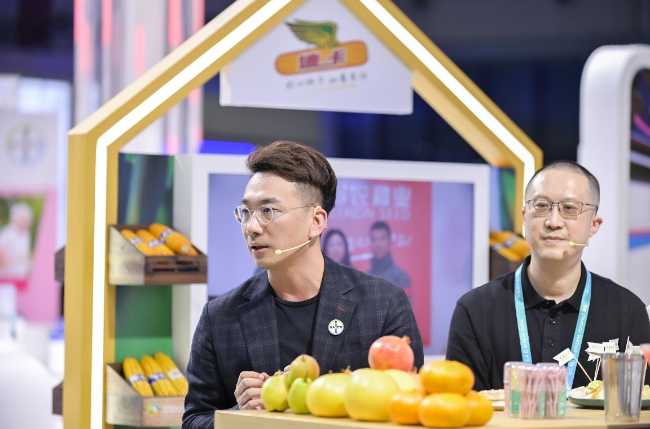 图为拜耳和本来生活嘉宾进博会共话优质果品产业链,左:拜耳作物科学中国数字化及市场营销总监单敬业,右:本来集团副总裁、本来生活常务副总经理、商品中心总经理钱桢澍