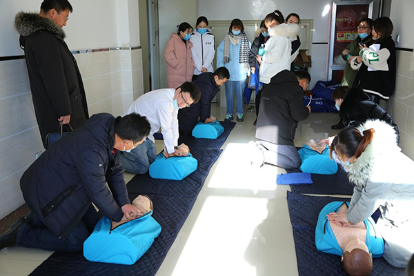 心肺复苏急救知识讲座及实操培训班,采用理论讲解和实际操作相结合的方式进行,介绍了心肺复苏的重要性,阐述了实施心肺复苏的前提条件,还详细讲解了心肺复苏紧急救护的操作步骤与要点,包括判断是否丧失意识、判断有无自主呼吸、判断有无脉搏、进行胸外心脏按压、清理口腔异物、开放气道、人工呼吸等,同时,还利用“模拟人”对胸外按压的频率、按压频率的计算方式、施救者的体位、动作要领等做了强调和演示。