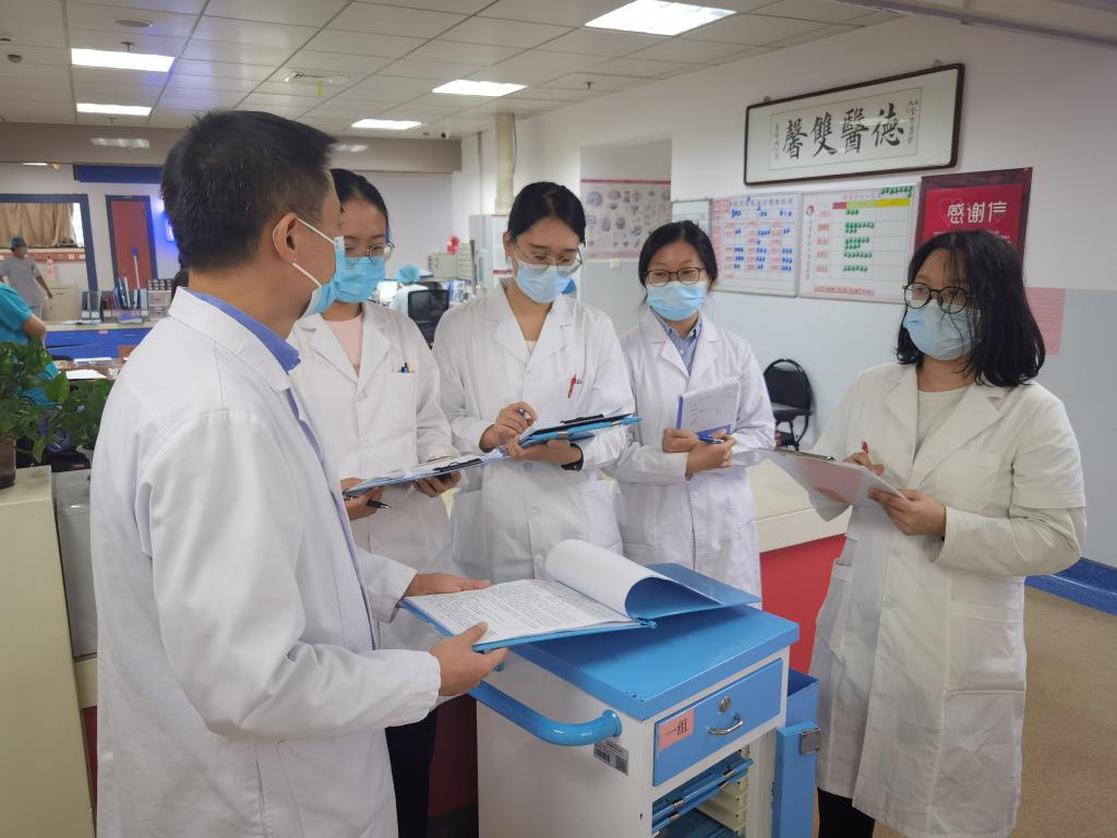 天津医科大学总医院神经内科主任医师阎涛(左一)与同事研讨病例中。(受访者供图)