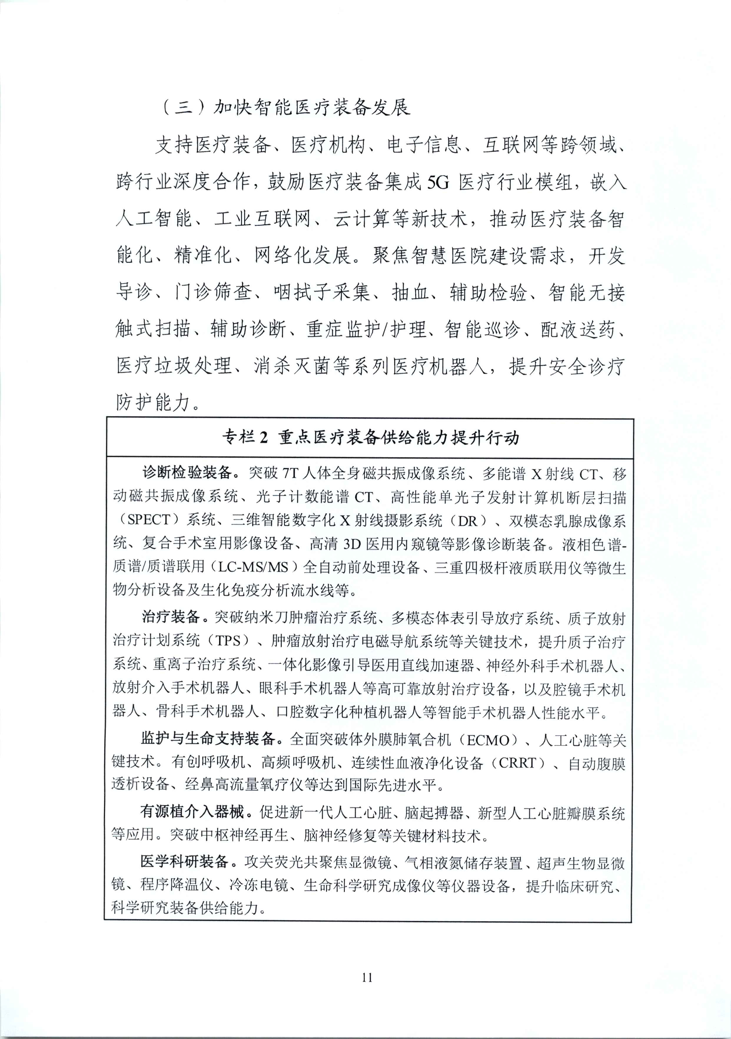 十部门联合印发《“十四五”医疗装备产业发展规划》