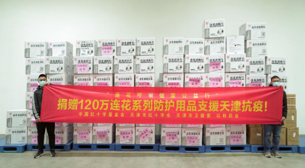 近日,以岭药业通过中国红十字基金会“连花呼吸健康公益行”项目,经天津市红十字会、天津市卫健委向天津疫情防控一线医务人员及志愿者捐赠价值120万元防疫物资,包括连花清瘟胶囊(颗粒)、连花清咳片、连花免洗抑菌洗手液等药品及连花呼吸健康产品。