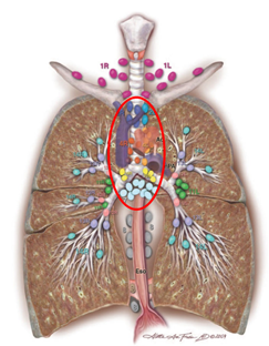 胸部淋巴结图谱,中间红圈是纵隔淋巴结区域