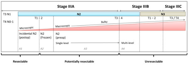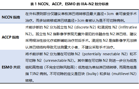 不同指南的IIIA-N2肺癌划分标准
