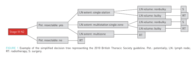 国际多国IIIA-N2期NSCLC指南。Pot.:可切除性;RT: 放疗;NP: 无倾向;S: 手术;LN: 淋巴结