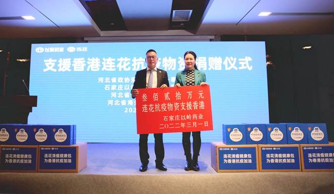 3月1日,支援香港连花抗疫物资捐赠仪式在河北石家庄以岭健康城举办,共计330万元的连花系列抗疫物资启程运往香港,这是以岭药业本年度第二次驰援香港抗疫。