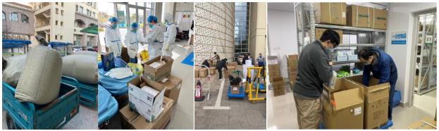 上药医疗器械(上海)有限公司金山公卫中心SPD团队主要服务上海市疫情防控定点医疗机构——上海市公共卫生临床中心(金山总部)的医疗、生活和办公用品集中配送。3月8日晚上,SPD团队成员陆鑫汇手中的值班应急电话响了起来,大批的被单枕芯等生活物资即将配送到院,在得知医院急需配送人手后,陆鑫汇连同两位同事第一时间赶到现场支援。除了防疫物资,生活物资也成了SPD团队的重点工作。