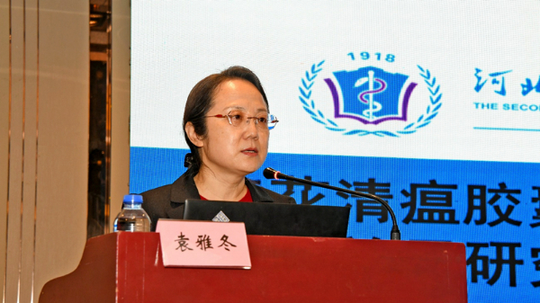 河北医科大学第二医院袁雅冬教授作题为《连花清瘟胶囊对新冠病毒肺炎密切接触者预防效果研究》的报告。