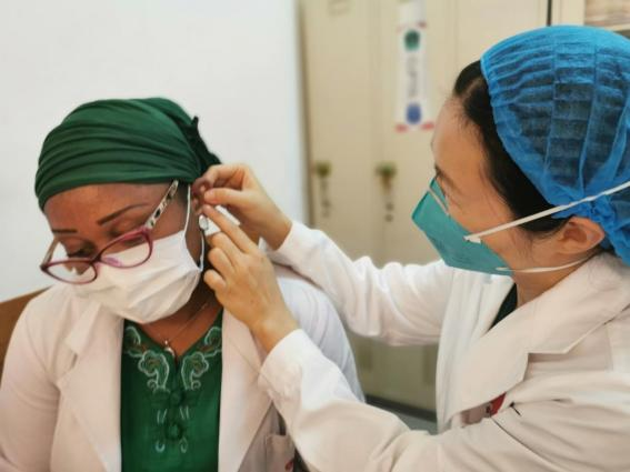 Mariame对艾灸很感兴趣。她说她只见过,从未尝试过。正好我来时随身带了些艾绒和艾条,既然你愿意学,我又愿意教,直接就地开始吧。我教她做温针灸、隔盐灸、温和灸......后来我又在驻地药房找到一些耳穴贴,又教她贴耳穴。本来还打算教点猛的,三棱火针放血,但没有三棱针,只得姑且作罢。Mariame兴奋的像个小孩子,给每个患者叽里呱啦的说着什么,虽然除了反复出现的“chinoise(中国人)”,其他一个字也听不懂,但我知道她在夸我,夸中国医生,因为每个患者听完之后都会冲我羞涩一笑,双手竖起大拇指,虔诚地说一声“Merci(谢谢)”。哇哦,这感觉,真的,好嗨哦,感觉人生已经到达了巅峰......
