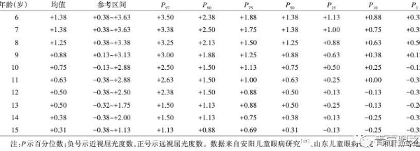 表1. 6~15岁学龄儿童眼球远视储备的参考区间(D)图片