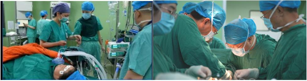 手术的第一个环节是由周晓峰主任主刀,为妈妈实施机器人辅助下腹腔镜微创供肾切除术,手术过程顺利。利用达芬奇机器人精准和灵活的操作,最大限度地保留了供肾的动脉、静脉和输尿管,实现移植肾的充分吻合。在手术室、麻醉科等移植团队的高效协作和努力下,成功将妈妈捐献的肾脏移植到女儿体内,当看到金黄色尿液从输尿管内迅速流出的时候,整个团队都为之高兴和激动。关键的手术环节顺利结束,泌尿外科医护团队接力继续进行术后的专业治疗和护理。