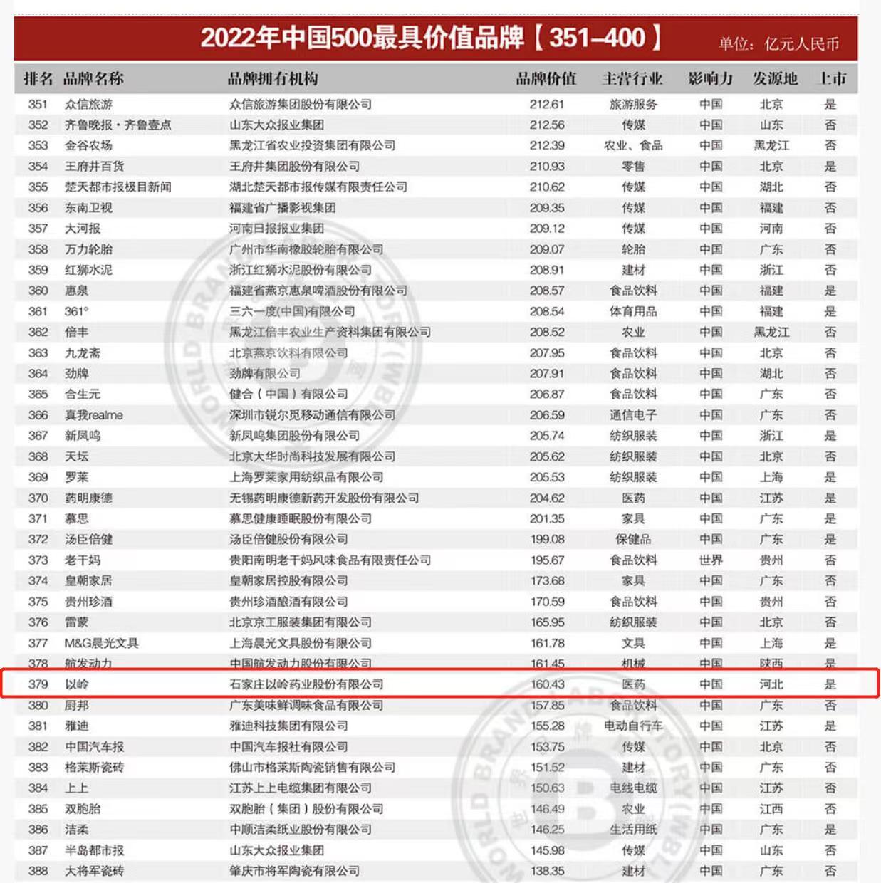 7月26日,“2022年(第十九届)世界品牌大会”在北京举行,本次大会由世界品牌实验室(World Brand Lab)主办,会上发布了“2022年中国500最具价值品牌榜单”,以岭药业再次上榜。