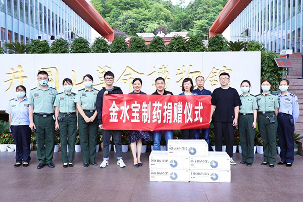 8月5日,江西济民可信集团旗下金水宝制药向井冈山革命博物馆捐赠黄氏响声含片。