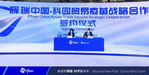 11月8日,辉瑞与科园信海(北京)医疗用品贸易有限公司(以下简称科园贸易)在第五届中国国际进口博览会上签署了战略合作协议,双方将在全国范围内开展13价肺炎球菌多糖结合疫苗从存储、配送以及供应链服务等全方位合作,让创新疫苗触达更多的儿童群体,尤其是基层和边远地区的儿童群体,推动疫苗的公平可及,扩大疫苗覆盖率,切实帮助儿童群体之间形成牢固的免疫屏障。科园信海(北京)医疗用品贸易有限公司总经理楚晨曦、辉瑞全球生物制药商业集团中国区疫苗事业部总经理张凌燕作为双方代表签署了战略合作框架协议。