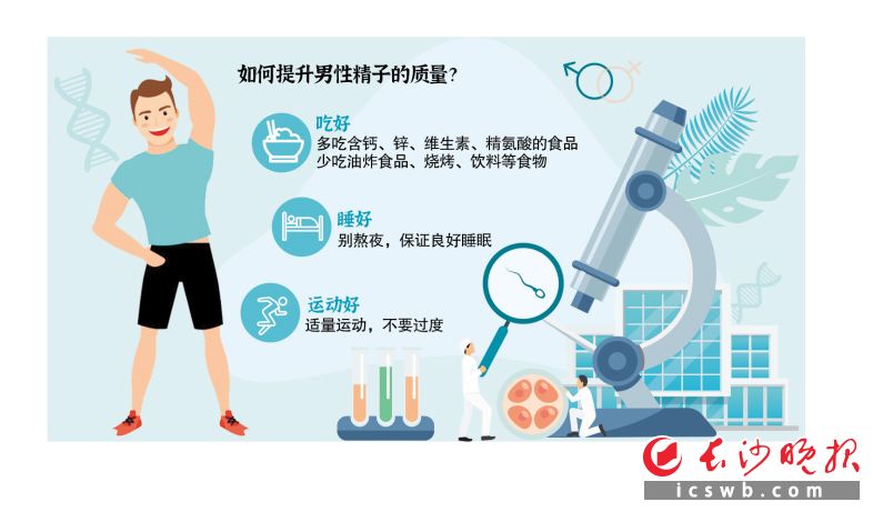如何提升男性精子的质量?“简单说来,就是吃好、睡好、运动好。”朱文兵建议。