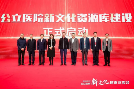 公立医院新文化资源库建设启动仪式。左起:张瑞恒、周美林、吴沛新、袁丽、陈啸宏、杨建立、郑宏、许培海、李正赤