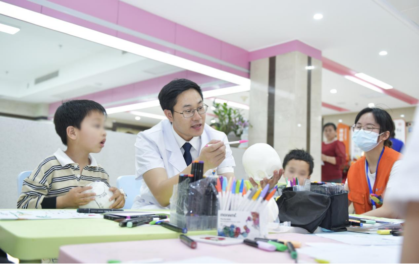 4月14日,湖南省儿童医院神经外科医生范双石向家长和儿童进行科普。(受访者供图)