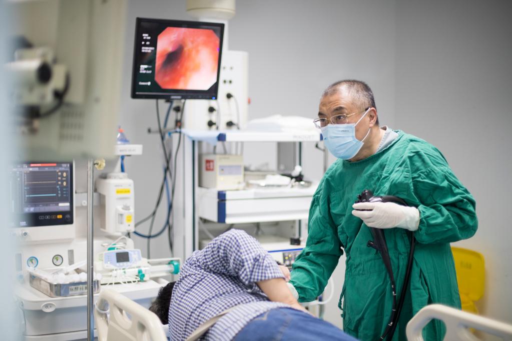 北京友谊医院消化中心主任医师吴咏冬在为患者进行胃肠镜检查。(北京友谊医院供图)