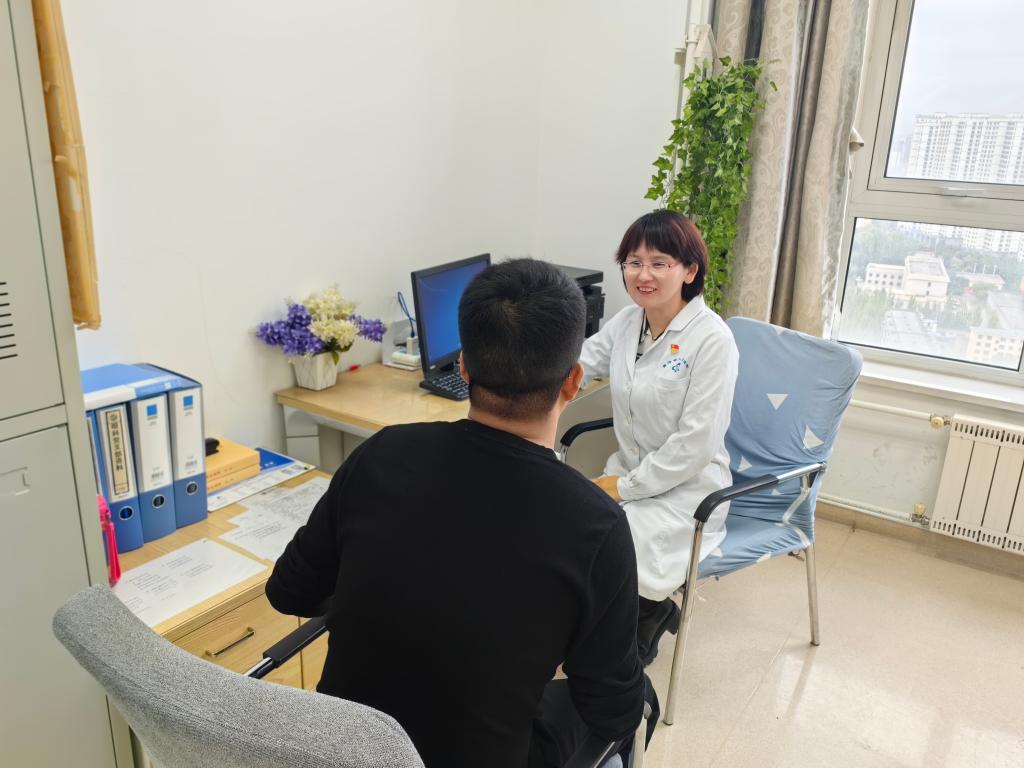 10月12日,青海省人民医院眼科副主任医师关瑞娟在与患者家属交流。