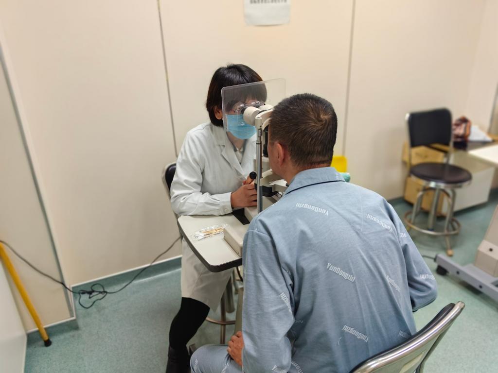 10月12日,青海省人民医院眼科副主任医师关瑞娟在为患者做检查。