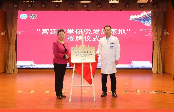 随后,主任委员张京春教授和北京市健宫医院院长马永军共同为“宫廷医学研究发展基地”落成揭牌。马永军表示,近年来,医院积极推进学术传承,整理、研究、继承和凝练宫廷医学专家的学术思想,培养学术传承人;建立中医药传承科技创新服务平台,打造互联网医院,结合宫廷医学制定患者管理路径,为宫廷医学的发展助力。“宫廷医学研究发展基地”的落成为医院中医药传承提供了非常好的平台,将一些“束之高阁”的中医瑰宝通过开发、宣传、科普,惠及到百姓的日常生活中。今后,医院将在北京市中医管理局和北京中医药学会的领导下,积极深入做好宫廷医学研究,为宫廷医学的传承和发扬贡献力量。