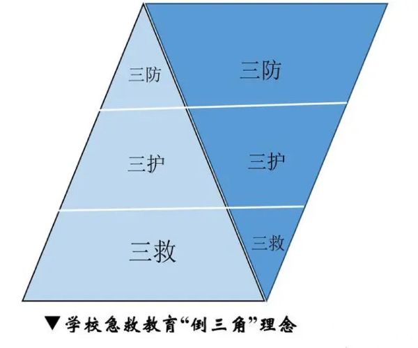在我国卫生健康事业从“以治病为中心”向“以人民健康为中心”转化的今天,办好青少年生命周期急救教育,关乎祖国的未来。秉承“上医治未病、中医治欲病、下医救已病”祖国医学观,学校急救教育防控期“上教防”、护卫期“中教护”、救生期“下教救”;具有防患本心之“防”、护卫本体之“护”、救生本能之“救”的特质。履行好“全社会要担负起青少年成长成才的责任”,践行好学校急救教育防护救“倒三角”新理念,将利于推动我国学校急救教育体系化建设,切实保障校园莘莘学子生命之安康。