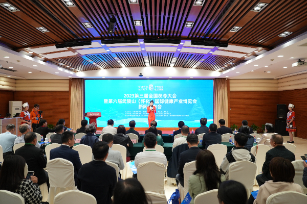 10月9日,2023第三届全国茯苓大会暨第六届武陵山(怀化)国际健博会新闻发布会在北京举行。中国菌物学会理事长、中国科学院微生物研究所研究员郭良栋,中央党校(国家行政学院)教授、博士生导师、中国西部人才开发基金会理事长丁文锋,国家民委教育科技司原司长、现任中国民族医药协会常务副会长兼秘书长田联刚,中国中医科学院医学实验中心主任、主任医师、博士生导师樊新荣,中央民族大学校长助理韦达提,全国工商联书业商会常务副会长、中国西部人才开发基金会雨露计划专项基金委员会主任匡俊英,湖南省科协党组成员、副主席张辉学,怀化市人民政府副市长韩晓波,怀化市科协党组书记张梅,靖州县委副书记、县长黄忆钢,怀化市商务局副局长刘娅等相关领导出席了本场发布会。