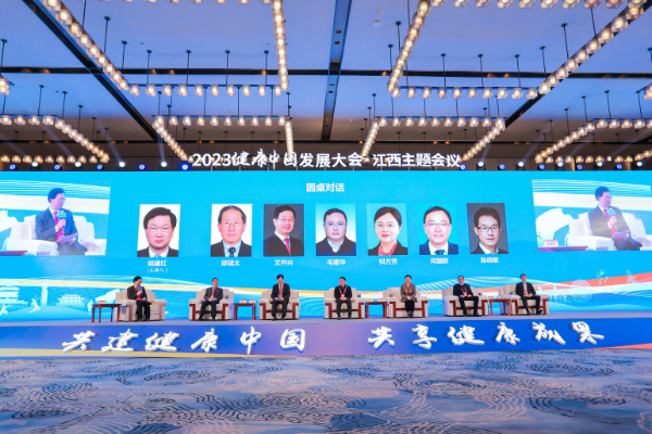 中国医学科学院北京协和医学院党委书记、副院校长姚建红主持圆桌对话。中国医学科学院北京协和医学院群医学及公共卫生学院教授、原卫生部疾控司副司长、世卫组织慢病资深专家邵瑞太,上海市肺科医院党委副书记、院长艾开兴,江西省鹰潭市人民政府副市长毛建华,江西省卫生健康委党组成员、江西省人民医院党委书记钭方芳,江西长天集团党委书记、董事长、江西省医投集团董事长何国群,国药控股江西有限公司总经理陈晓敏分别分享了各自在推动卫生健康事业高质量发展中的经验和做法。