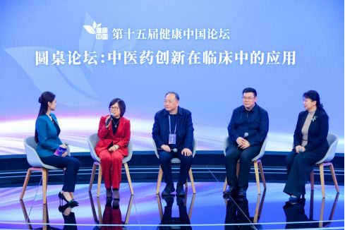 圆桌论坛环节,东直门医院原副院长林谦、中日友好医院中医科主任张洪春、广安门医院内分泌科主任倪青、中国中医科学院西苑医院治未病中心主任张晋围绕着“中医药创新在临床中的应用”话题展开讨论。
