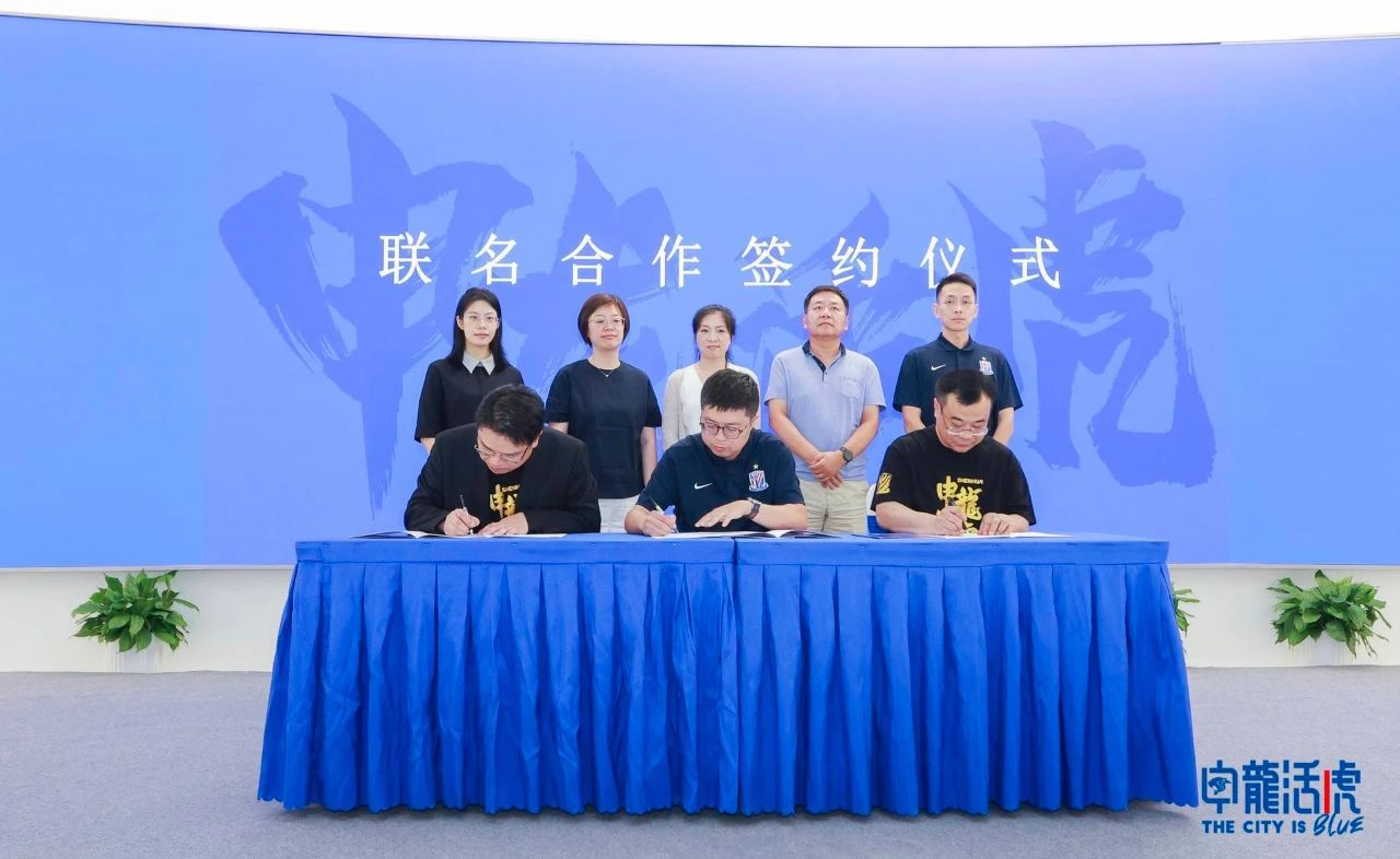 8月8日,上海申花&上海医药集团“申龙活虎•The city is blue”联名款系列清凉产品发布会在上海市生物医药前沿产业创新中心举办。在上海市国资委创新处处长张颖、副处长马莹、上海市商务委市场体系建设处处长王纪升、上海申花足球俱乐部党支部书记、副总经理许一鸣、上海医药集团副总裁邵帅的见证下,上海申花足球俱乐部商务总监沈佶、上海中华药业有限公司党总支副书记、常务副总经理韦欣、上海医药广告有限公司总经理彭波共同签署了联名合作协议。