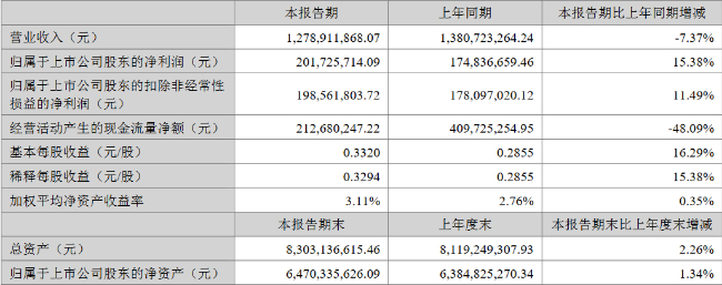 近日,迈克生物发布的2024年上半年业绩报告显示,公司营业收入12.79亿元,较上年同期下降7.37%;实现净利润2.02亿元,同比增长15.38%;经营活动现金净流入为2.13亿元,同比减少48.09%。