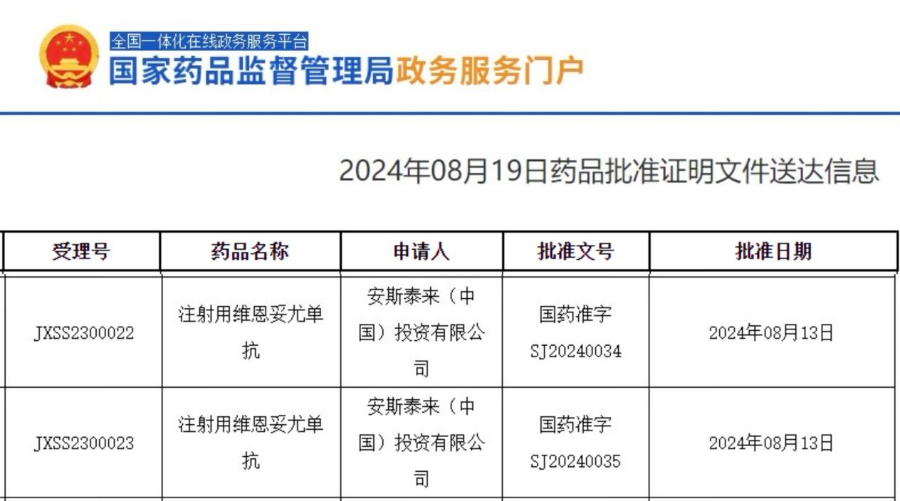 8月20日,安斯泰来制药集团宣布,中国国家药品监督管理局药品审评中心(CDE)已批准备思复(通用名注射用维恩妥尤单抗,以下简称维恩妥尤单抗)用于局部晚期或转移性尿路上皮癌(mUC)成人患者。
