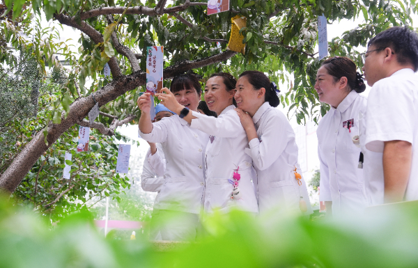 这些诗歌大多从日常的医疗工作中汲取灵感,运用美好的语言,抒发真挚的情感。花园广场上矗立的卡通展板上,桃树上随风飘舞的书签里,一首首灵动的小诗向大家展示了儿科医务工作者的风采,字里行间流露出对儿科事业的热爱与坚守。