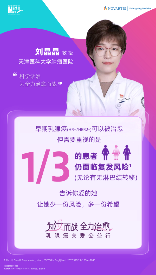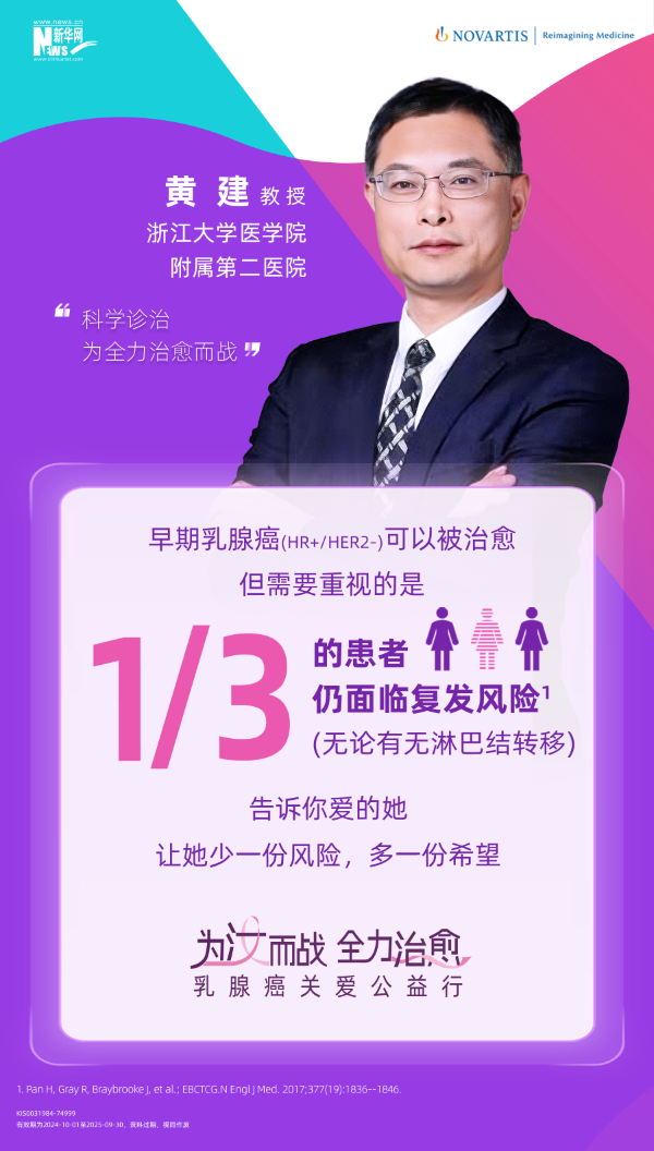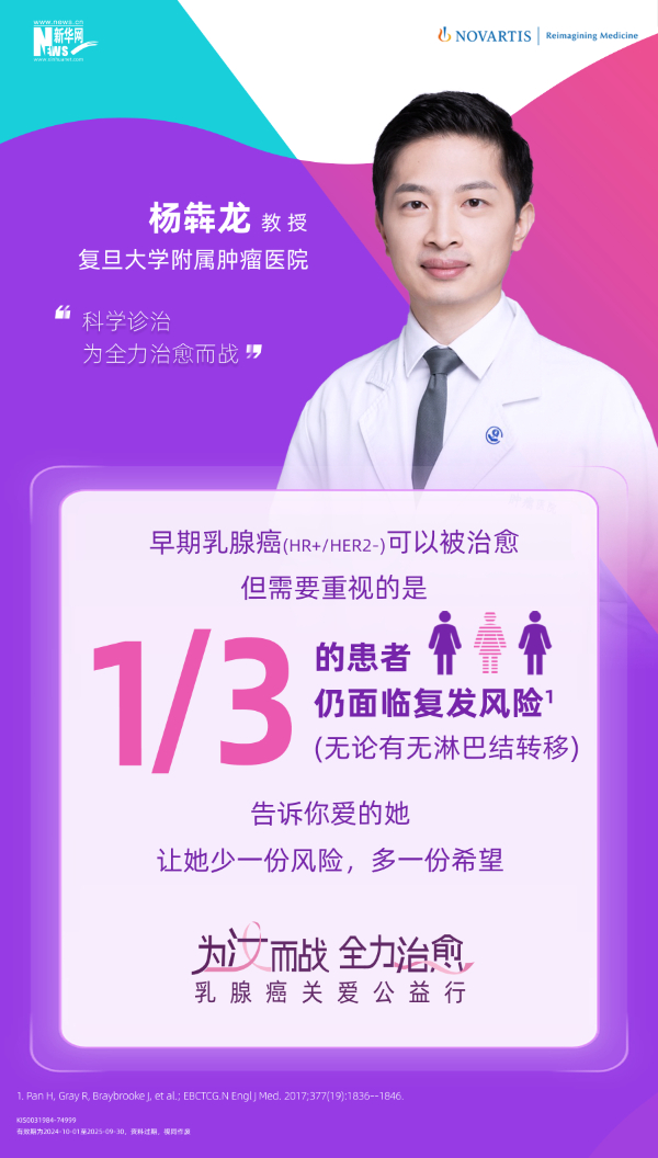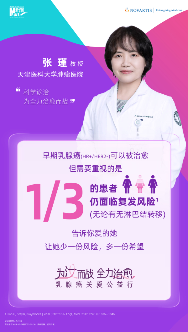 在10月世界乳腺癌防治月期间,新华网联合诺华公司共同发起的“为汝而战,全力治愈”乳腺癌关爱公益行项目将在上海举行。活动期间,五位乳腺癌防治领域专家——天津医科大学肿瘤医院张瑾教授、浙江大学医学院附属第二医院黄建教授、中国医学科学院肿瘤医院袁芃教授、天津医科大学肿瘤医院刘晶晶教授以及复旦大学附属肿瘤医院杨犇龙教授将共同出席并围绕“早期乳腺癌科学防治与复发风险管理”方面展开深入讨论。